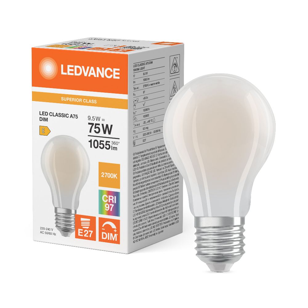 Ledvance E27 LED Lampe Classic dimmbar matt 9,5W wie 75W 2700K warmweißes Licht CRI97 sehr hohe Farbwiedergabe