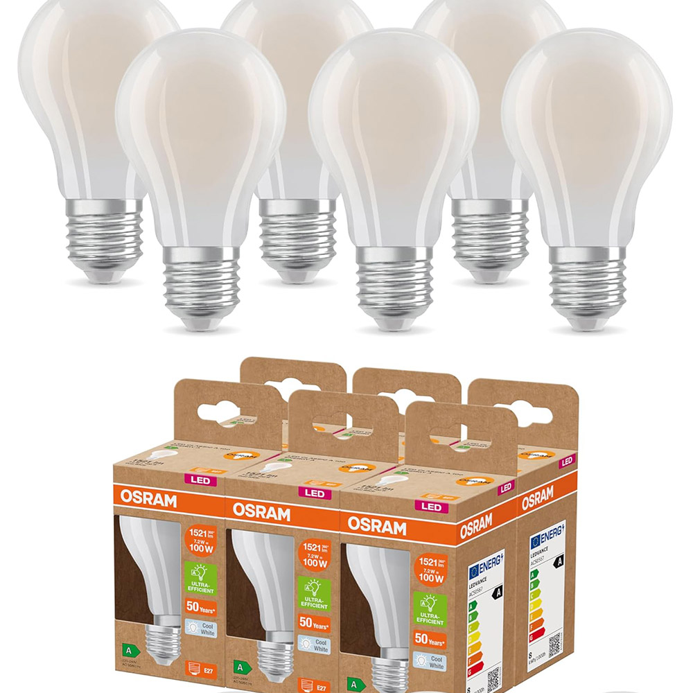 Mobile Preview: 6er Pack OSRAM E27 besonders effiziente LED Lampe 7,2W wie 100W 4000K neutralweißes Licht matt - beste Energie Effizienz Klasse