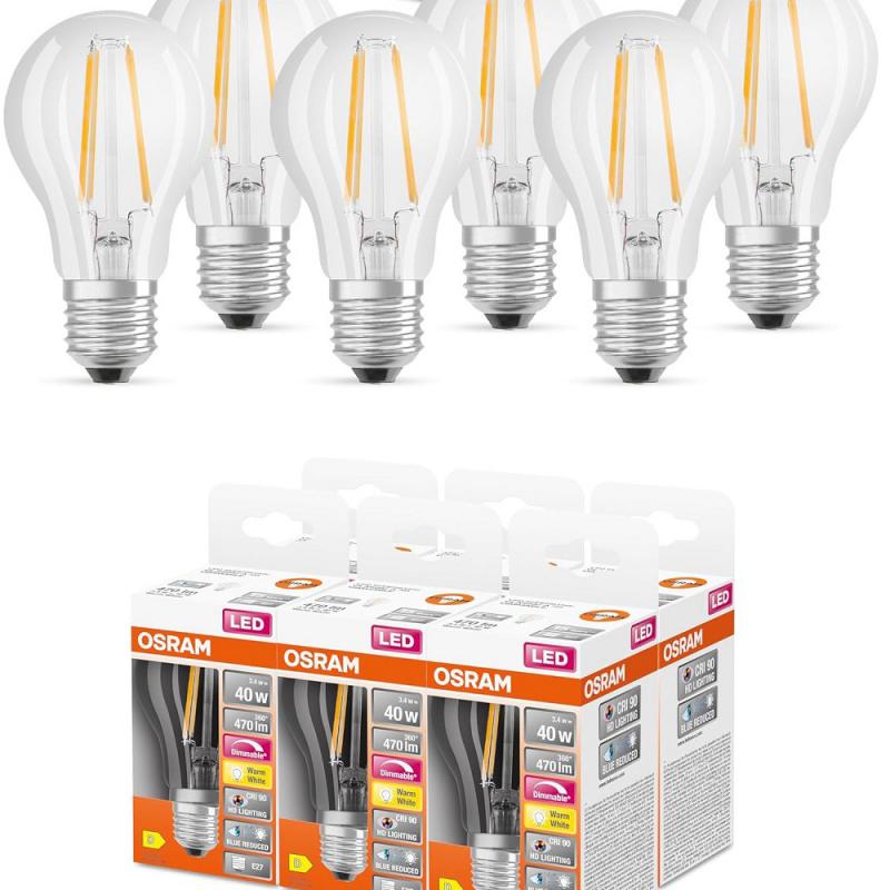 6er Set Osram E27 SUPERSTAR+ CLASSIC LED Lampe dimmbar 3,4W wie 40W 2700K warmweißes Licht hervorragende Farbwiedergabe CRI > 90