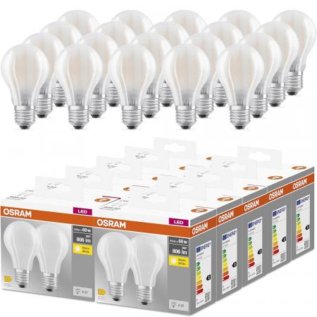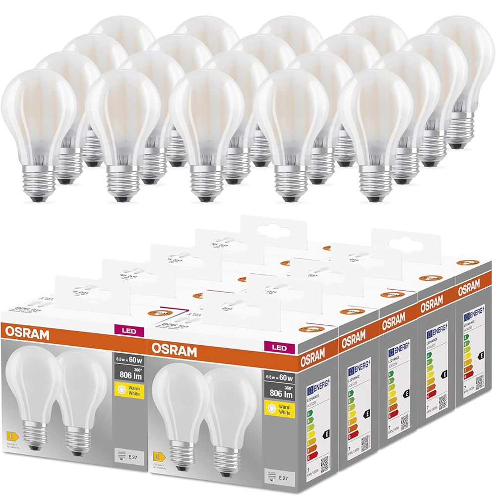 Diese matten LED-Leuchtmittel von Osram verfügen über ein E27 Gewinde und strahlen ein warmweißes Licht für eine gemütliche Raumatmosphäre aus. Die OSRAM-LEDs verbrauchen nur 6,5 Watt, was herkömmlichen 60 Watt entspricht, bei einer sehr guten Lichtausbeute von je 806 Lumen.