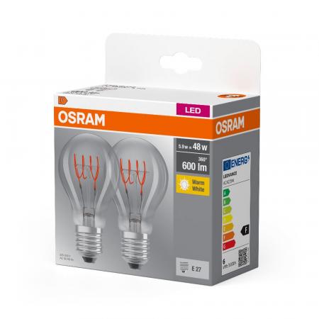 Diese LED-Leuchtmittel von Osram mit einer klaren Oberfläche und Filamenttechnik verfügen über ein E27 Gewinde und strahlen ein warmweißes Licht für eine gemütliche Raumatmosphäre aus.
