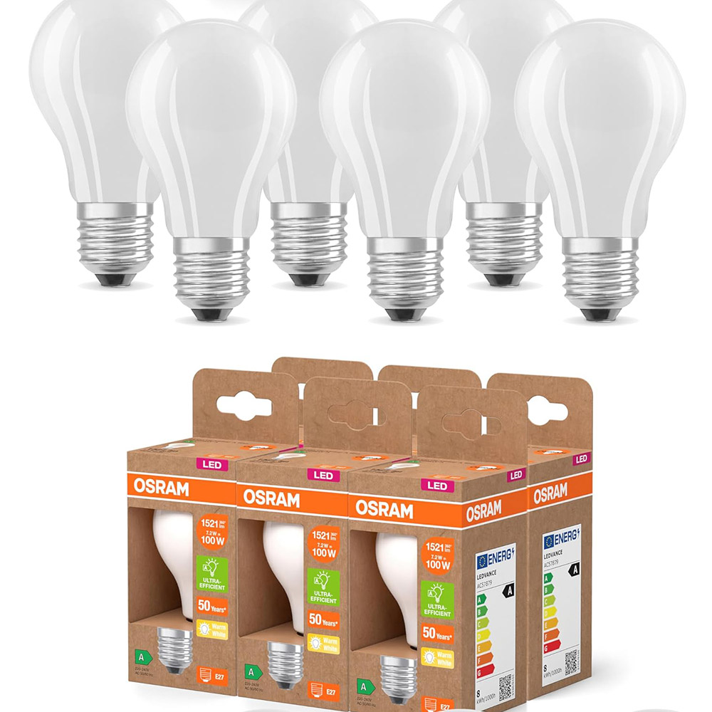 6er Set OSRAM E27 LED Lampe Classic matt 7,2W wie 100W warmweißes Licht 2700K - Energy efficiency class A