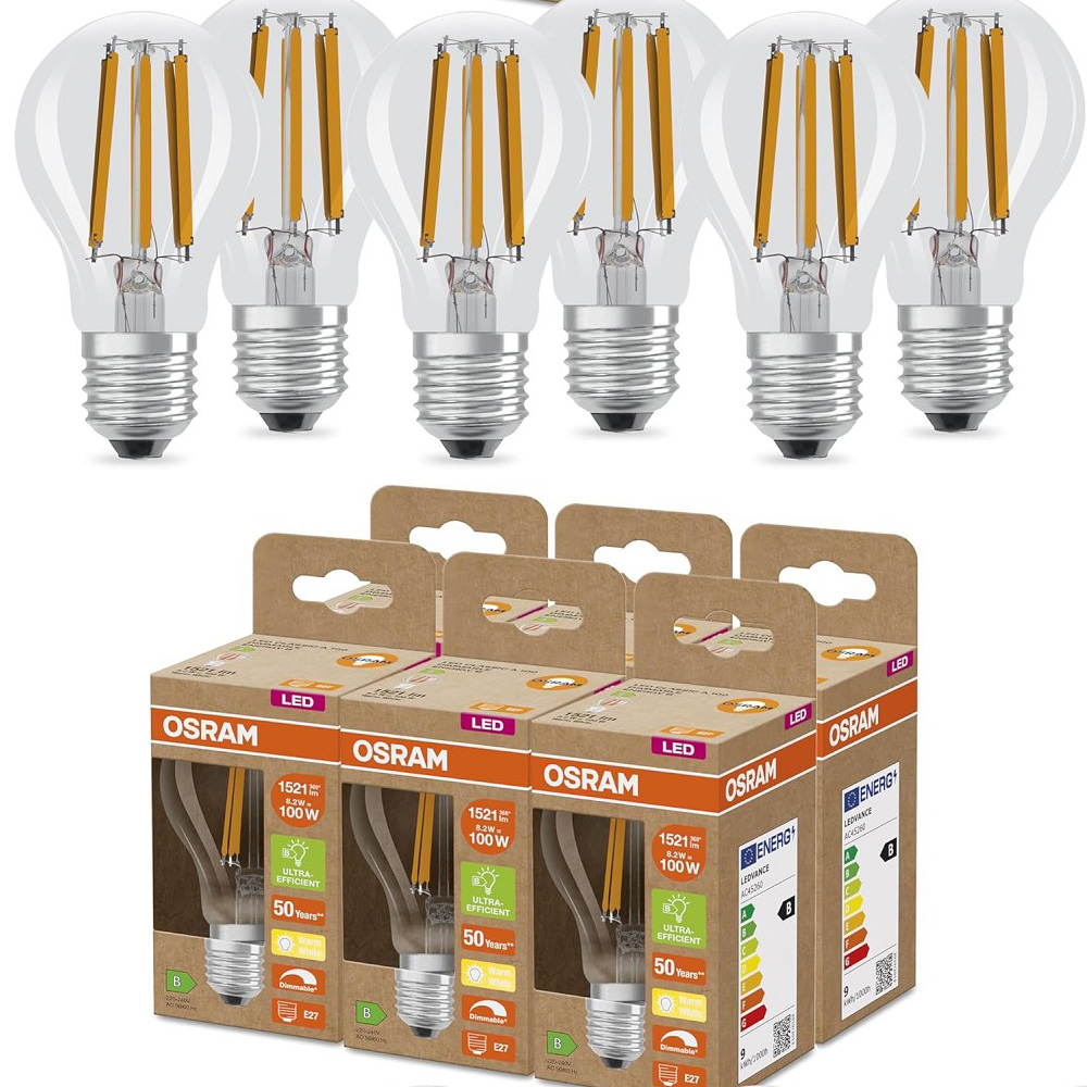 6er Set OSRAM E27 SUPERSTAR+ CLASSIC besonders effiziente LED Lampe dimmbar 8,2W wie 100W 2700K warmweißes Licht