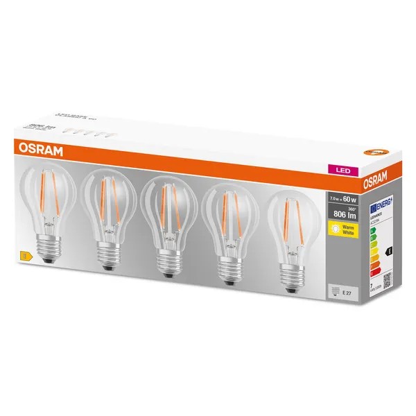 5er PACK Osram LED Leuchtmittel E27 Filament 6.5W warmweiss wie 60W