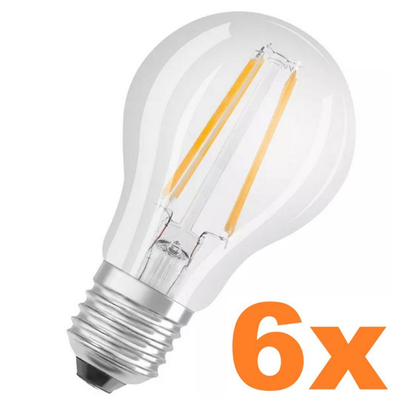 Das Sparset LED-Leuchtmittel von Osram mit einer klaren Oberfläche verfügt über ein E27 Gewinde und strahlt ein warmweißes Licht aus. Die OSRAM-LED verbraucht nur 6,5 Watt, was herkömmlichen 60 Watt entspricht, bei einer starken Lichtausbeute von 806 Lumen.