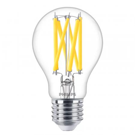MASTER-Glühlampen DimTone Dimmeffekt dimmen wie die klassischen Glühlampen: Ihr Licht wird beim Dimmen wärmer (2700-2200K). Sie bieten außerdem erhebliche Energieeinsparungen, da sie im Vergleich zu normalen LED-Lampen 30 % weniger Energie verbrauchen. Mit einer Lebensdauer von 25.000 Stunden verringern diese dimmbaren Glas-LED-Lampen auch die Wartungskosten.
