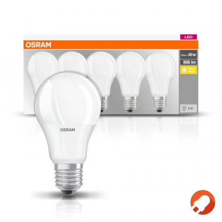 Lieferumfang: 5 x OSRAM LED BASE A60 E27 8.5W Warmweiß