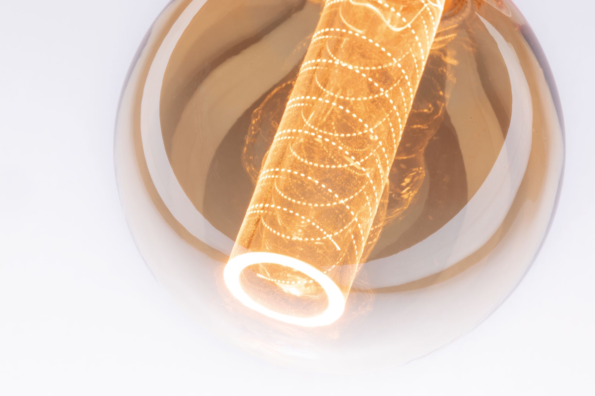 Das wahre Schönheit von innen kommt, beweisen unsere neuen Vintage-Globes mit Innenkolben in Spiralmuster. Die Kolben mit feiner Lasergravur geben ihr dezentes und vollkommen blendfreies Gold-Licht an die Umgebung ab und der leuchtende Ring am Ende des Kolbens strahlt perfekt gerichtetes Licht nach unten. Damit verpassen die extravaganten Leuchtmittel jeder noch so schlichten Leuchte den perfekten Glamour-Look.