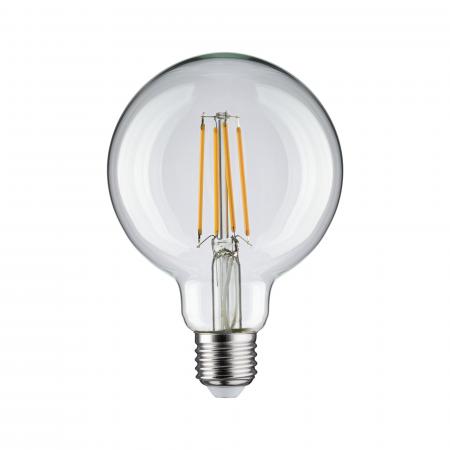 Das klare, vollglas LED Filament Globe mit 806lm sorgt für ein strahlendes Licht in Wohnraumleuchten mit Schirm oder getöntem Glas. Mit ihrem E27-Sockel, einer Farbtemperatur von 2700K und einer Leistung von 7,5W ist das Leuchtmittel wie geschaffen für einen Einsatz als Hauptbeleuchtung in Wohnräumen.