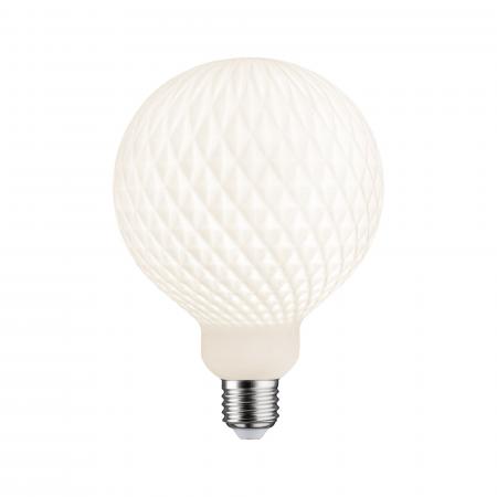 Das dekorative LED Leuchtmittel White Lampion sorgt für gleichmäßiges und warmes Rundum-Licht. Das Leuchtmittel ist stufenlos dimmbar und eignet sich hervorragend in Pendel- oder Tischleuchten. Dank hochwertigen, mattweißen Vollglas und einer faszinierenden Oberflächenstruktur ist das Leuchtmittel ein Hingucker im ein- und ausgeschalteten Zustand. Es verbindet klassische Formen mit effizienter LED-Technik und ist mit einer handelsüblichen E27-Fassung ausgestattet.
