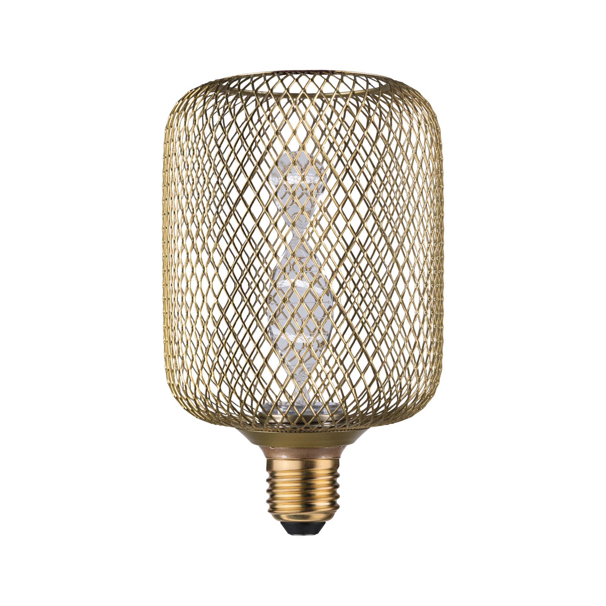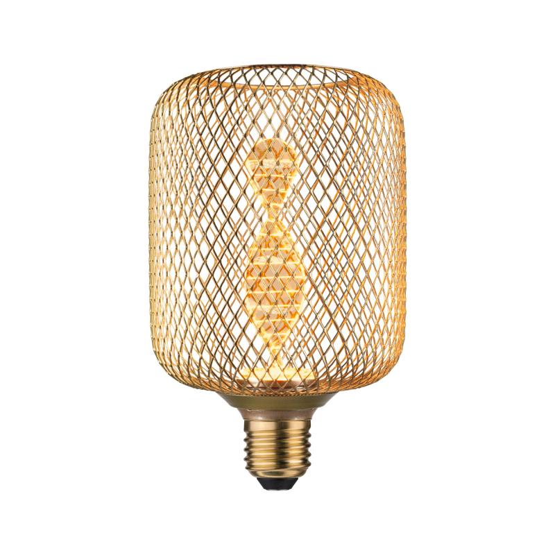 Das LED Leuchtmittel Metallic Glow verbindet dezentes, goldenes Licht mit einem dekorativen, messingfarbenen Metallkorb. Durch die Kombination aus einem lasergravierten Innenkolben und einer feinen Gitterstruktur, eignen sich die Leuchtmittel perfekt für Pendel- oder Tischleuchten mit E27 Fassung. Das leuchtende Element am Ende des Innenkolbens strahlt perfekt gerichtetes Licht nach unten. Zeitloses Design trifft hier auf effiziente LED-Technik und sorgt für gemütliche und goldene Akzentbeleuchtung.