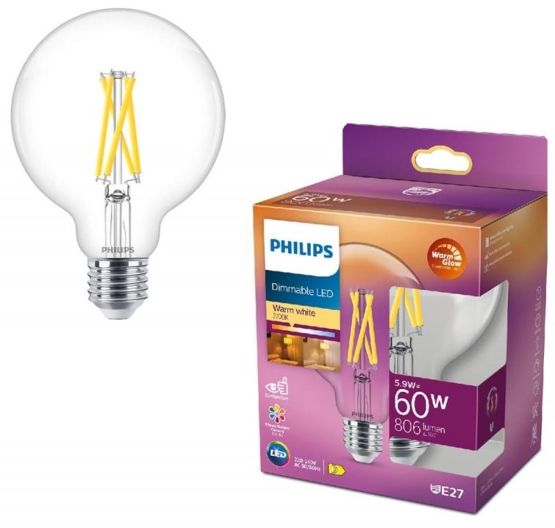 1) - Dimmbare LED Lampen von Philips sind mit vielen Dimmern kompatibel. Mehr Information und die Dimmerlisten finden Sie unter www.philips.de/c-m-li/led-lights/dimmable-led
