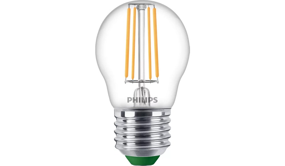 Die Leistung beträgt 3,8 W und entspricht einer herkömmlichen 60 W Glühlampe. Der Energieverbrauch liegt bei 4 kWh pro 1.000 Stunden, Energieeffizienzklasse A. Die Lampe hält bis zu 50.000 Stunden und 500.000 Schaltzyklen, sodass häufiges Ein- und Ausschalten kein Problem darstellt. UltraEfficient-LEDs sparen Energie bei jedem Einschalten und sind mindestens 40 % effizienter als normale Philips LEDs.