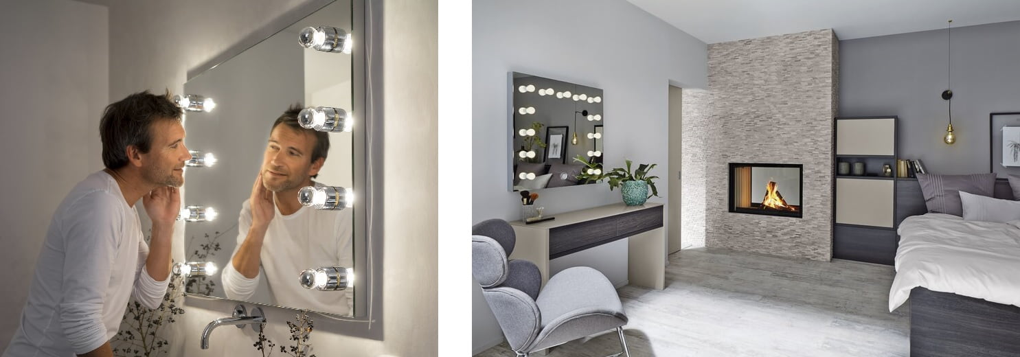 Doch ihr Einsatz ist nicht nur auf das Badezimmer beschränkt: Mit ihren silbern verspiegelten Kappen und den sichtbaren "LED-Fäden" sind sie auch beliebte Stilelemente in Restaurants, Hotels und Wohnzimmern. Durch ihre verspiegelte Kuppe verteilt sich das warmweiße Licht (2.700 Kelvin) mit einem Abstrahlwinkel von 320° und leuchtet ohne Aufwärmzeit sofort.