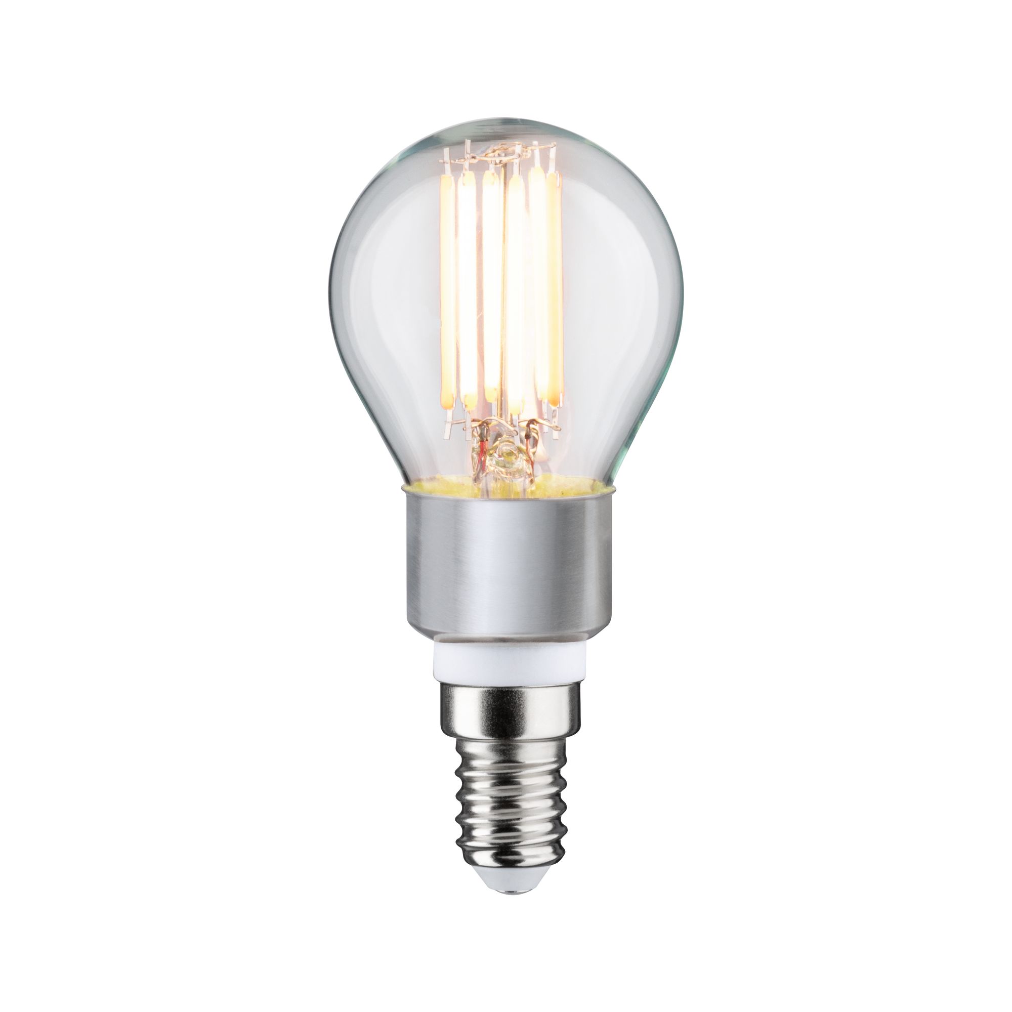 Die Filament-Tropfenlampe mit einer Leistung von 5 Watt gibt ihr warmweißes Licht in alle Richtungen ab. Mit einem handelsüblichen Wand-Dimmer kann die Lichtfarbe zwischen 1.800 und 3.000 Kelvin eingestellt werden. Dadurch kann, je nach Stimmung, zwischen gemütlichem Goldlicht und angenehm tageslichtweißem Licht gewechselt werden.