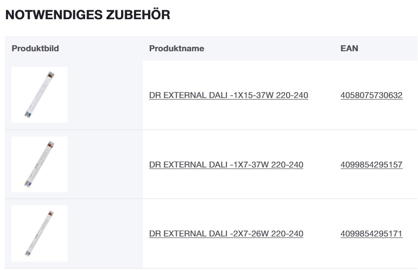 - Ausgelegt für den Betrieb an LED DRIVER LED TUBE EXTERNAL DALI