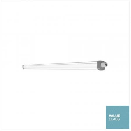 Sehr schlanke LED-Feuchtraumleuchte mit geschlossenem PC-Gehäuse und PC-Endkappen. Kurze alterungsbeständige Dichtungen, Schutzklasse IP65. Robust gegen Staub- und Strahlwasserschutz. Leuchte mit begrenzter Oberflächentemperatur gem. DIN EN 60598-2-24 geeignet für den Einsatz in brandgefährdeten Einrichtungen.