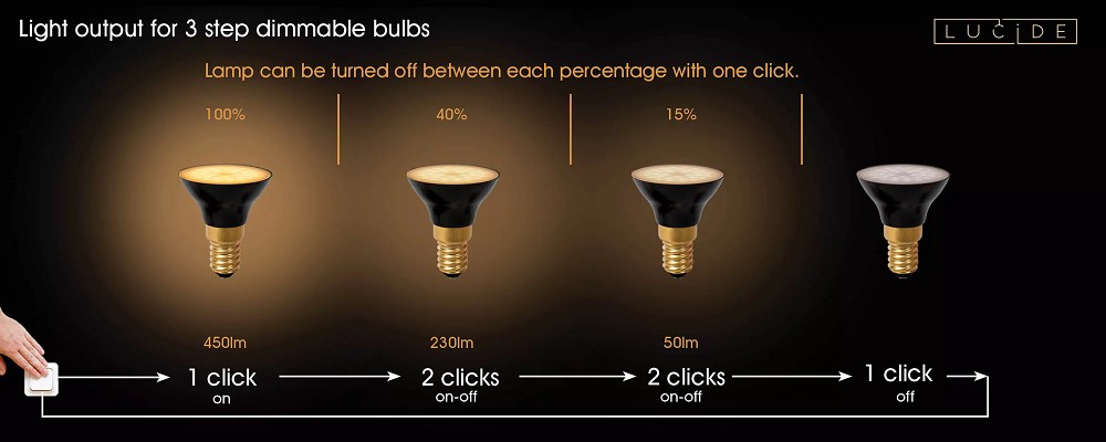 • Bedienung: Lichtschalter (3-Stufen-Dimmung)