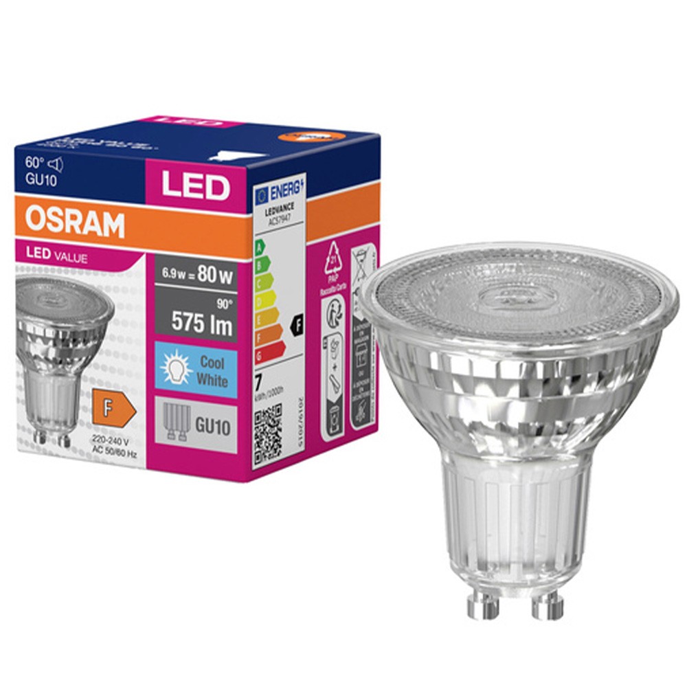 10er Vorteilspack Leistungsstarker OSRAM GU10 LED Strahler PAR16 60° Abstrahlwinkel 6,9W wie 80W neutralweißes Licht 4000K