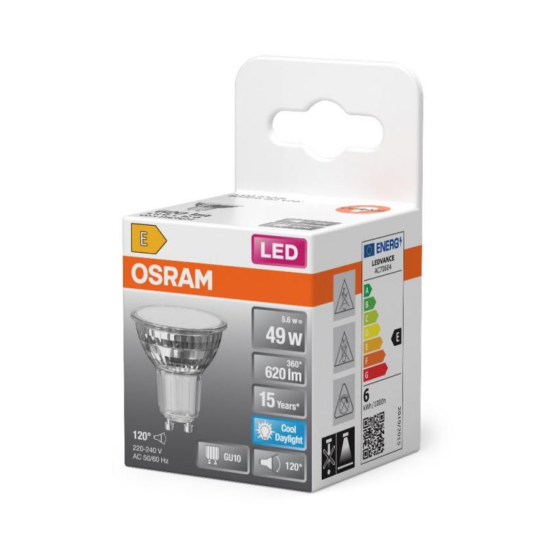 Der OSRAM STAR GU10 / PAR16 LED-Strahler 5,6W 120° klar kann als Ersatz für Halogen-Reflektorlampen, Strahler und Fluter verwendet werden. Er ist für den Einsatz mit dekorativen Lampen, wie z.B. Downlights zur Markierung von Fluren, Türen, Treppen usw., konzipiert. Auch in Ausstellungsräumen und Schaufenstern findet der Strahler zahlreiche Anwendungen.