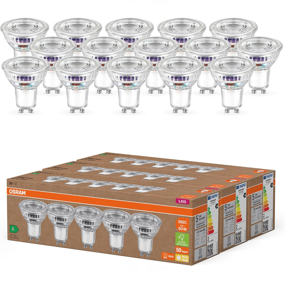 15x OSRAM GU10 LED Strahler besonders effizient 36 ° 2W wie 50W 2700K warmweißes Licht