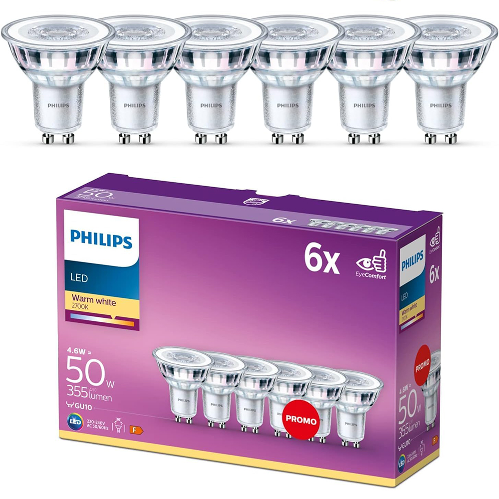6er Pack Hochwertige Philips GU10 LED Strahler 36°-Ausstrahlwinkel 4.6W wie 50W
