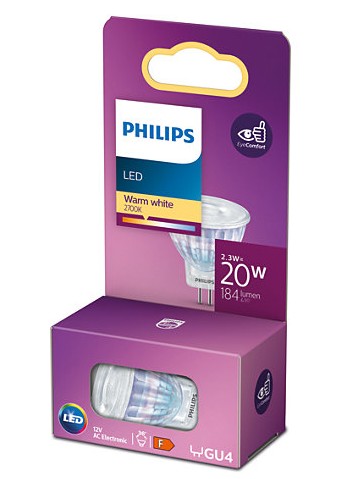 Mobile Preview: 8er Sparset PHILIPS LED Strahler GU4-Sockel MR11 2.3W wie 20W Ersatz 36° -Abstrahlwinkel warmweisses Licht
