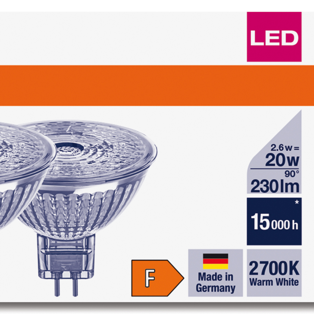 LED als hochwertige Alternative für eine Glühlampe / Glühbirne. Dieses klare LED-Leuchtmittel von Osram verfügt über ein GU5.3 Stecker und strahlt ein kühles Licht für eine gute Raumatmosphäre aus. Die OSRAM-LED verbraucht nur 2,6 Watt, was herkömmlichen 20 Watt entspricht.