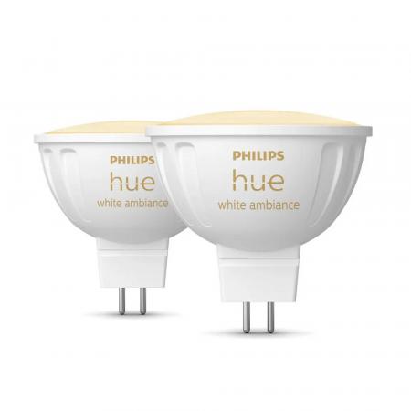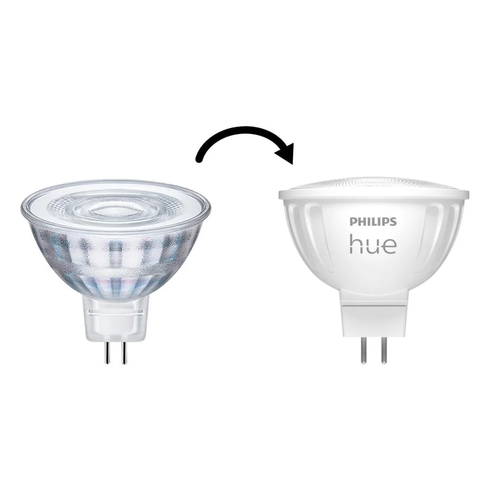 Das Philips Hue LED-Leuchtmittel ist für Lampen mit einer Gu5.3-Fassung geeignet, die künftig auf smarte Lichtsteuerung umgestellt werden sollen. Das Leuchtmittel ist kompatibel mit der Hue Technologie Licht lässt sich dimmen.
