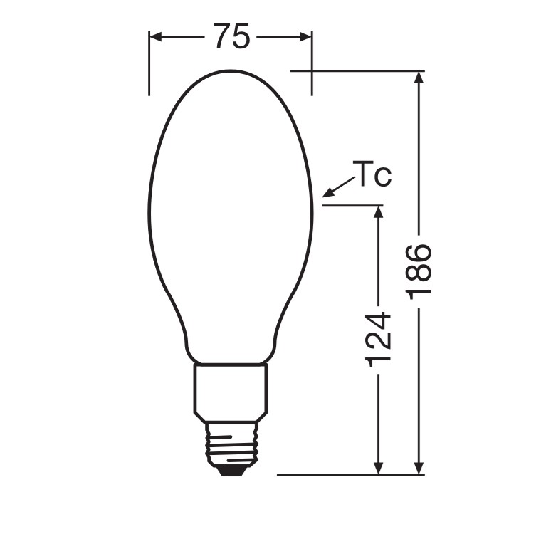 - Der tc-Punkt der Lampe liegt bei horizontalem Einbau am Kühlkörper auf der Oberseite der Lampe.