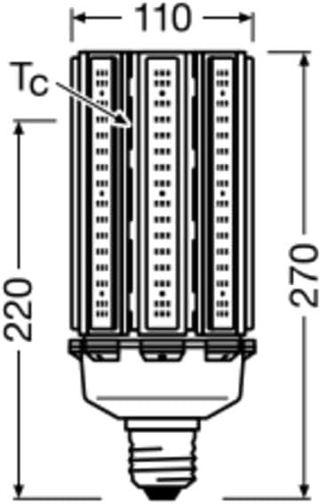 - Der tc-Punkt der Lampe liegt bei horizontalem Einbau auf der Oberseite der Lampe.