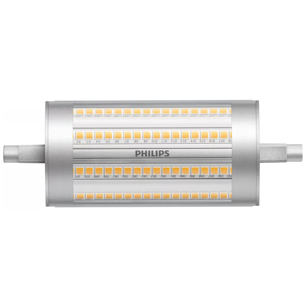 Die CorePro R7S LED-Lampe ist eine Nachrüstlösung, die herkömmliche zweiseitig gesockelte R7S-Stablampen ersetzt. Ihr Licht ist nach dem Konzept "Licht rundum" mit dem einer Halogenlampe vergleichbar. Innerhalb des Sortiments können Sie dimmbare Produkte mit Tiefdimmfunktion wählen, die es Ihnen ermöglicht, eine gemütliche Atmosphäre zu schaffen, wenn diese Lampe in eine dimmbare Leuchte eingesetzt wird.