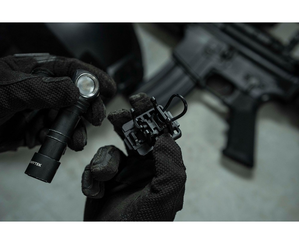 Die AHM-05 Halterung wurde speziell entwickelt, um Armytek Multi Taschenlampen auf NVG-Halteplatten zu befestigen. Sie ermöglicht eine schnelle und sichere Montage, sodass die Hände für andere Aufgaben frei bleiben.
