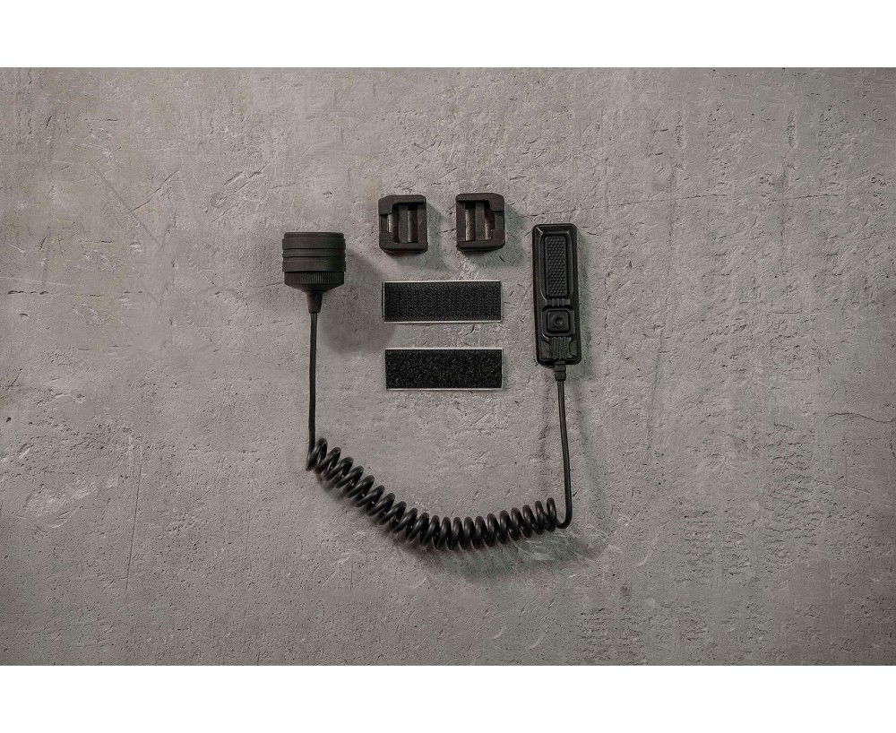 Magnetische Fernschalter mit zwei Bedienknöpfen für dauerhaftes und kurzzeitiges (nur durch Drücken und Halten) Einschalten des Lichts. Für die Anbringung muss die hintere Abdeckung nicht abgeschraubt werden: Die externe Fernbedienung wird mit nur einer Handbewegung direkt mit dem Magnetanschluss verbunden, die spezielle Konstruktion sorgt für sicheren Halt. Widersteht Rückstößen.