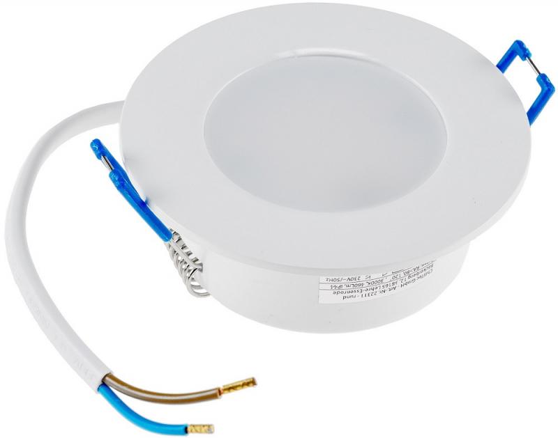ChiliTec LED-Einbauleuchte "Flat-30 FR-R" 3000K Ø85x30mm, 5W, 460lm, IP44, rund, weiß