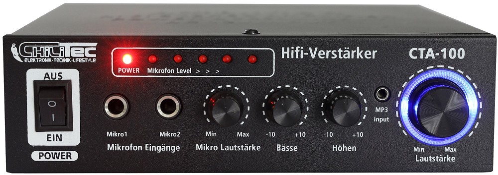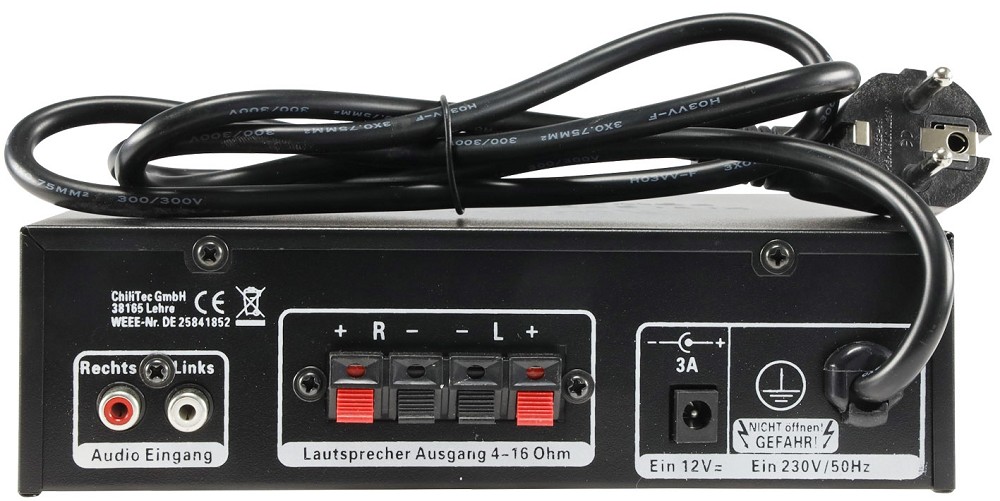 ChiliTec HiFi-Verstärker "CTA-100" 100W, schwarz 1x Line In, Betrieb 12V o. 230V