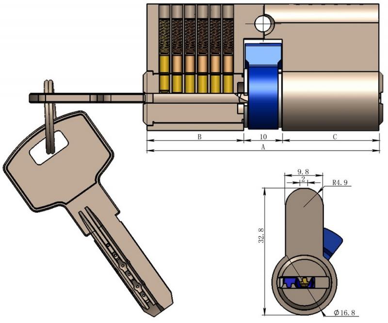 ChiliTec Schließzylinder 60mm (30+30mm) Profil-Zylinder, 5 Sicherheits-Schlüssel