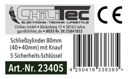 ChiliTec Schließzylinder 80mm (40+40mm) mit Knauf Profil-Zylinder, 5 Sicherheits-Schlüssel