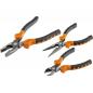 3-teliges Handwerker-Profizangenset mit rutschfest gummierter Isolierung bestehend aus• Seitenschneider 15cm• Spitzzange 15cm• Kombizange 18cm