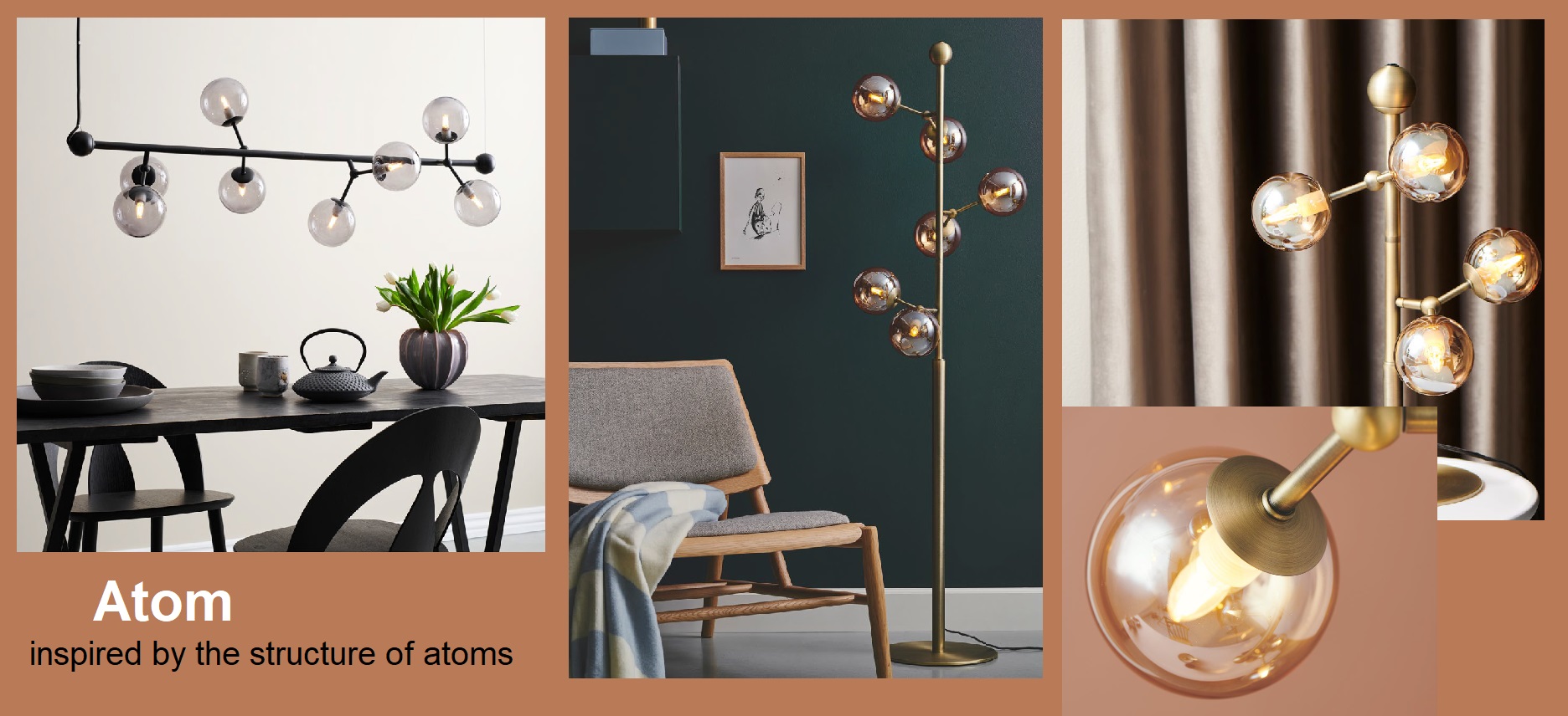 Die ATOM-Serie ist von rotierenden Elektronen inspiriert, was zu einer einzigartigen Kollektion von Beleuchtung geführt hat. Die verschiedenen Varianten der Serie können sowohl als dekorative Elemente im Raum fungieren als auch gleichzeitig in schlichte und minimalistische Formen verwandelt werden – ganz ohne Werkzeug nach individuellem Geschmack. Mit den entsprechenden LED-Leuchtmitteln lässt sich die ATOM im Licht dimmen und schafft so eine gedämpfte und wohnliche Atmosphäre sowie ein praktisches Arbeitslicht. Ein tolles Design mit einem modernen und minimalistischen Ausdruck.