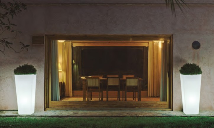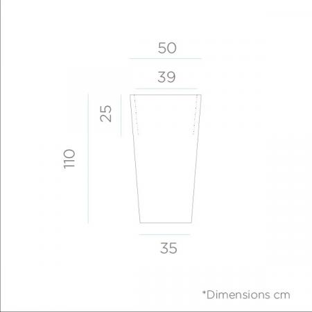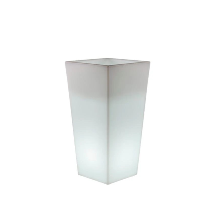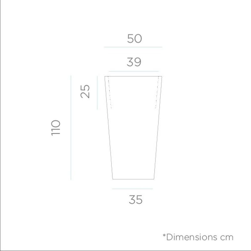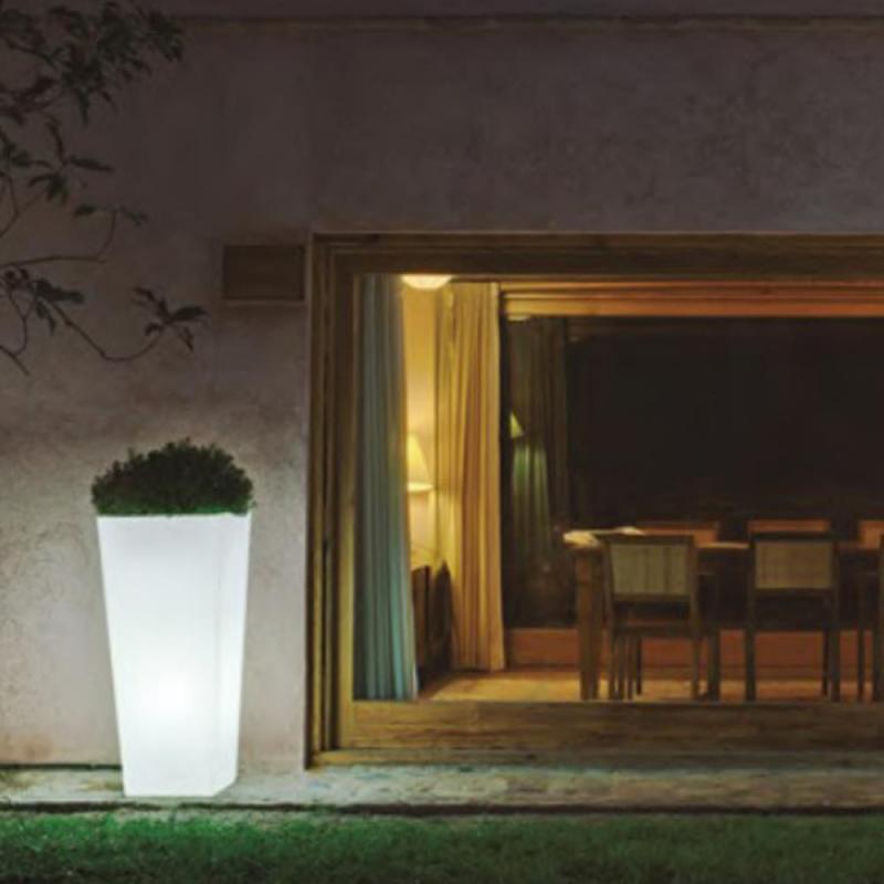 Der MELISA 50 ist ein trapezförmigen puristischer & beleuchteter Pflanzkübel (50x50x110 cm, 14 Liter Pflanzvolumen) mit klar struktiurierter Linienführung. Er ist ein Blickfang für Innen und Außen an dem Sie bestimmt immer wieder Ihre Freude haben werden. Eine gute Figur macht er beispielsweise vor der Haustür, auf dem Balkon oder die Terrasse. Ein Gefäß nicht nur für Pflanzen, sondern auch für eine dezente Umgebungsbeleuchtung. MELISA ist sicherlich auch für Ihre Gäste, Freunde und Nachbarn einen Blick wert. Aufgrund seines geringen Gewichtes ist dieser Topf einfach zu transportieren. Bunte Blumen oder prächtige Solitätpflanzen bilden einen gelungenen Kontrast zu dem Weiß und der tageslichtweissen Lichtfarbe des Kübels. Features: In & Out-Finish mit Kabel für den Anschluß an 230 Volt.