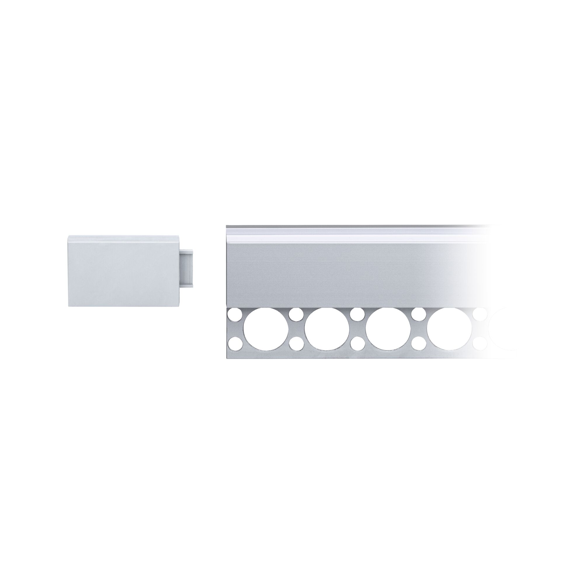 Für den Abschluss von waagerecht verlaufenden LumiTiles Top Profilen, verdeckt Profilansätze und Schnittkanten und ermöglicht die einfache Kabelzuführung von unten. Damit kann der Strip-Anschluss-Stecker der über der letzte Fliese endet, einfach in das Profil verlegt werden, ohne das Profil von unten aufschneiden zu müssen. Die Stecker-Abdeckungen sind optional als Montagehilfen vorgesehen, wenn es bauseitig keine Möglichkeit gibt, direkt von der Seite ins Profil einzuspeisen.