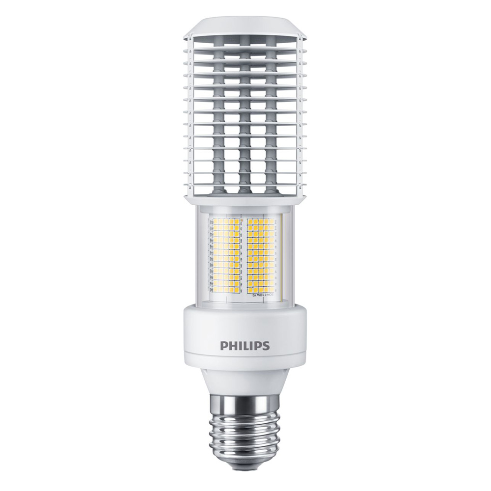 Die Philips SON LED Lampe für den Straßenbereich bietet eine einfache und sich schnell amortisierende LED-Lösung für den Austausch von konventionellen SON-T/NAV-T Lampen. Die LEDs sind auf der gleichen Höhe wie der Brenner vorheriger SON-T/NAV-T Lampen platziert und nutzen somit die Reflektoren und Optiken der bestehenden Leuchte optimal.