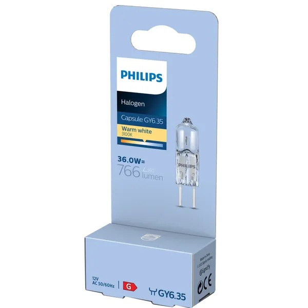 Philips Halogen Leuchtmittel Stiftsockelform 35W = 50W GY6,35 klar 766lm warmweiß 3100K 12V