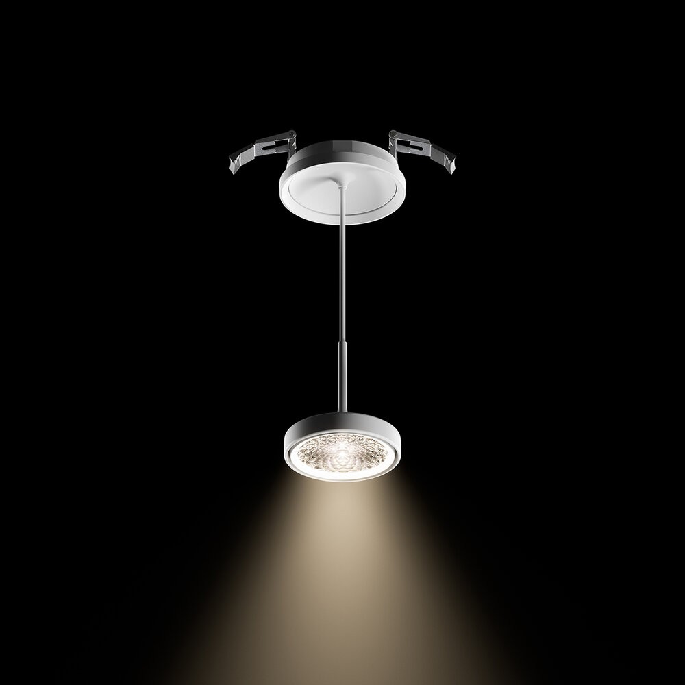 Die Nivo Pendelleuchte erweitert die Formensprache der Nivo Serie in den Raum. Sie lässt sich als Aufbauvariante oder für den Deckeneinbau einsetzen und mit dem Zubehörartikel Einbauring randlos in den Trockenbau integrieren.