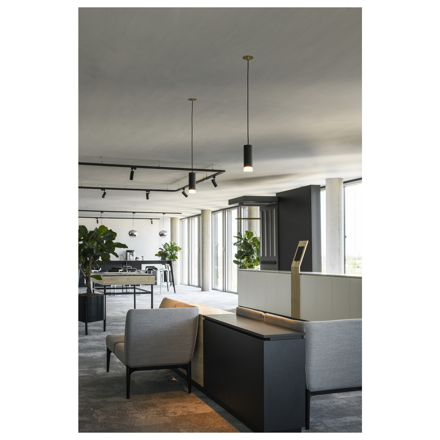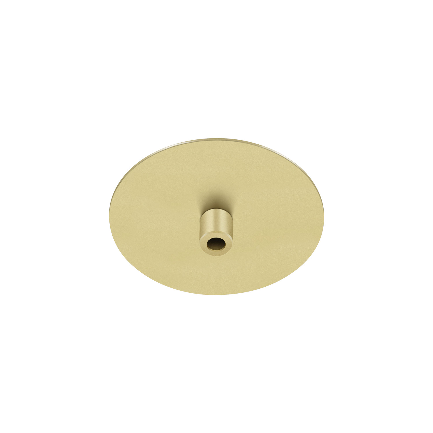 Die runde FITU Einbau-Deckenrosette in Gold ermöglicht eine beliebte Kombination mit FITU Pendelleuchten. Eine entsprechende Zugentlastung befindet sich im Lieferumfang.