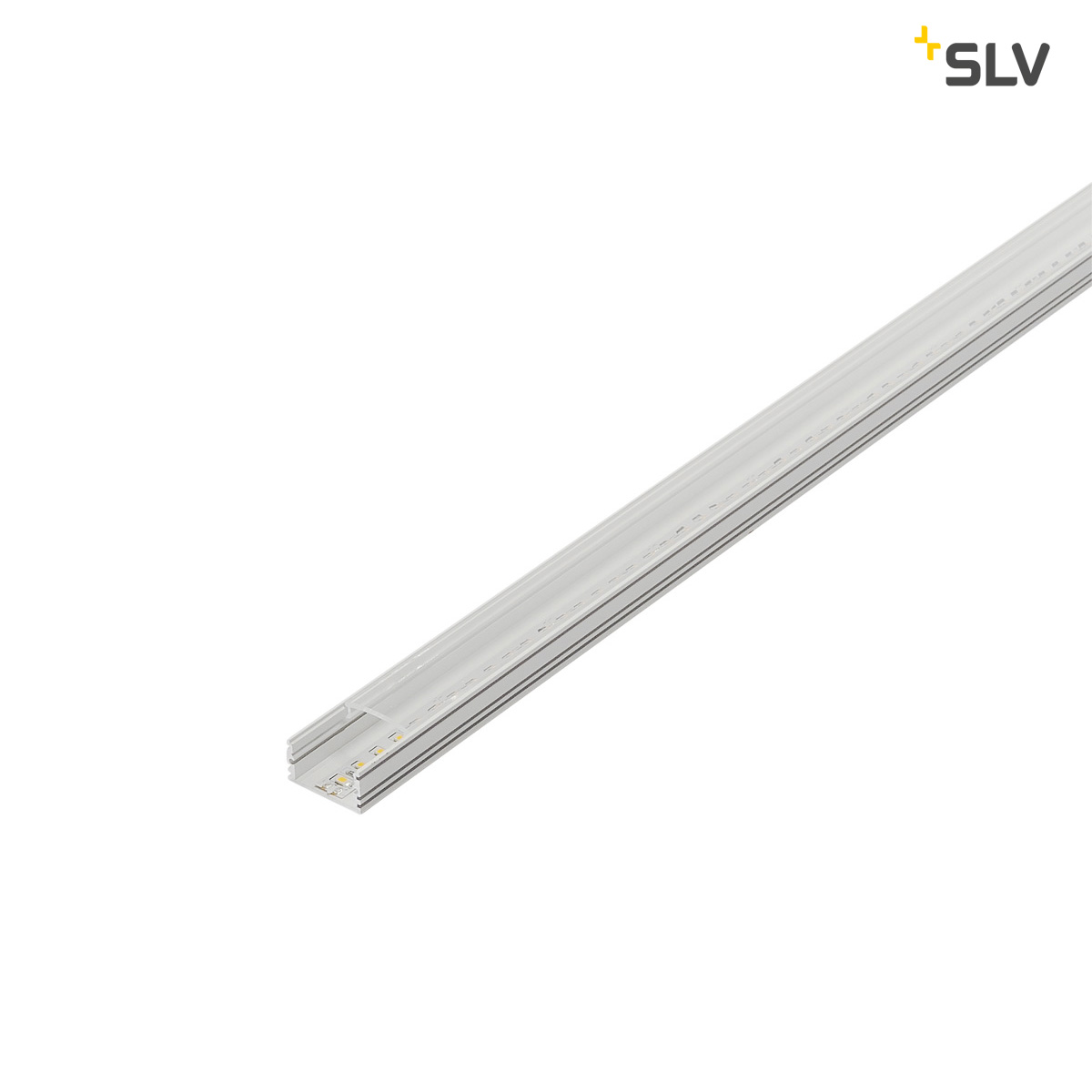 Abdeckung für GLENOS Linear-Aufbau-Profil 2713 in 100- und 200 cm Länge. Die Abdeckung ist in einer klaren, satinierten oder weißen Version vorhanden.