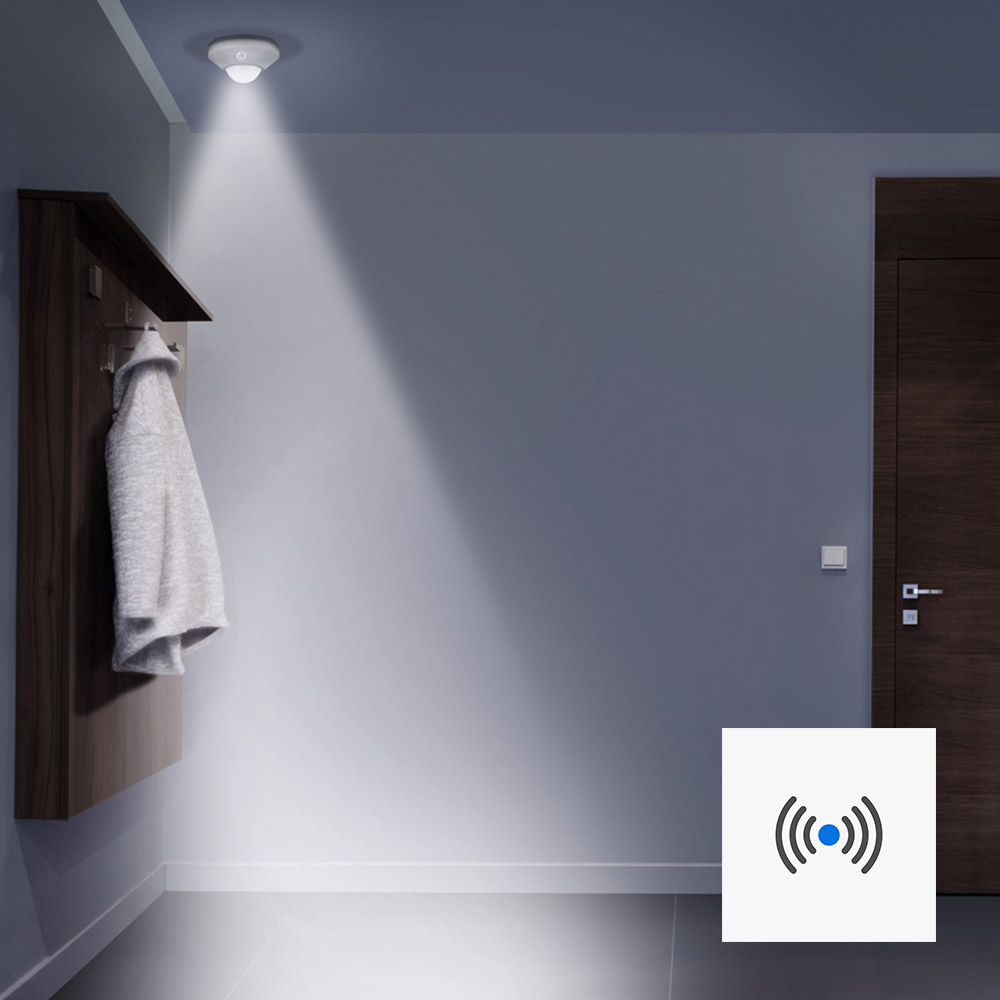 Wo ist der Haustürschlüssel? Lassen Sie eine NIGHTLUX Ceiling Ihr Zuhause erhellen. In ihrem kühl-weißen Lichtkegel finden Sie nicht nur den Schlüssel leicht, sondern treffen auch sofort das Schloss. Ob im Haus oder in der Wohnung, die NIGHTLUX Ceiling schaltet sich nur ein, wenn es dunkel ist und wenn sich etwas bewegt. Das spart Batterien.
