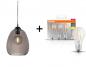 Attraktive runde Pendelleuchte Dillon mit einem Leuchtenschirm aus Rauchglas