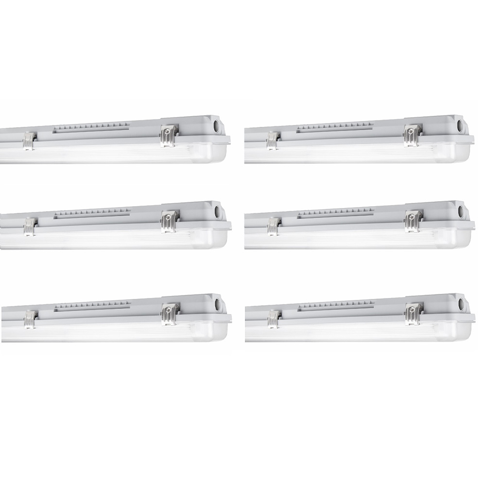 Schützen Sie Ihre LED-Lampen mit dieser feuchtigkeitsgeschützten Leuchte. Die Leuchte hat die Schutzart IP65 und ist für 60cm LED-Röhren geeignet. Sie ist für die einfache Installation von röhrenförmigen AC-LED-Lampen vorverdrahtet. Das robuste Gehäuse sorgt dafür, dass die Leuchte allen Wetterbedingungen standhält. Das erforderliche Zubehör ist im Lieferumfang enthalten, ohne Röhren.